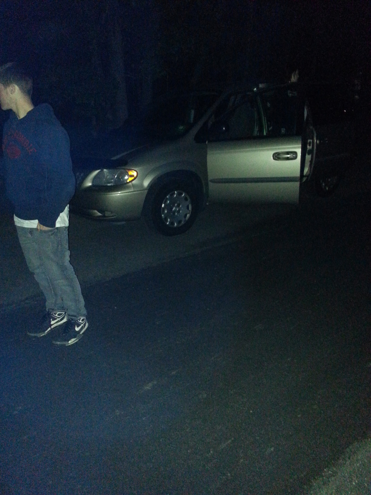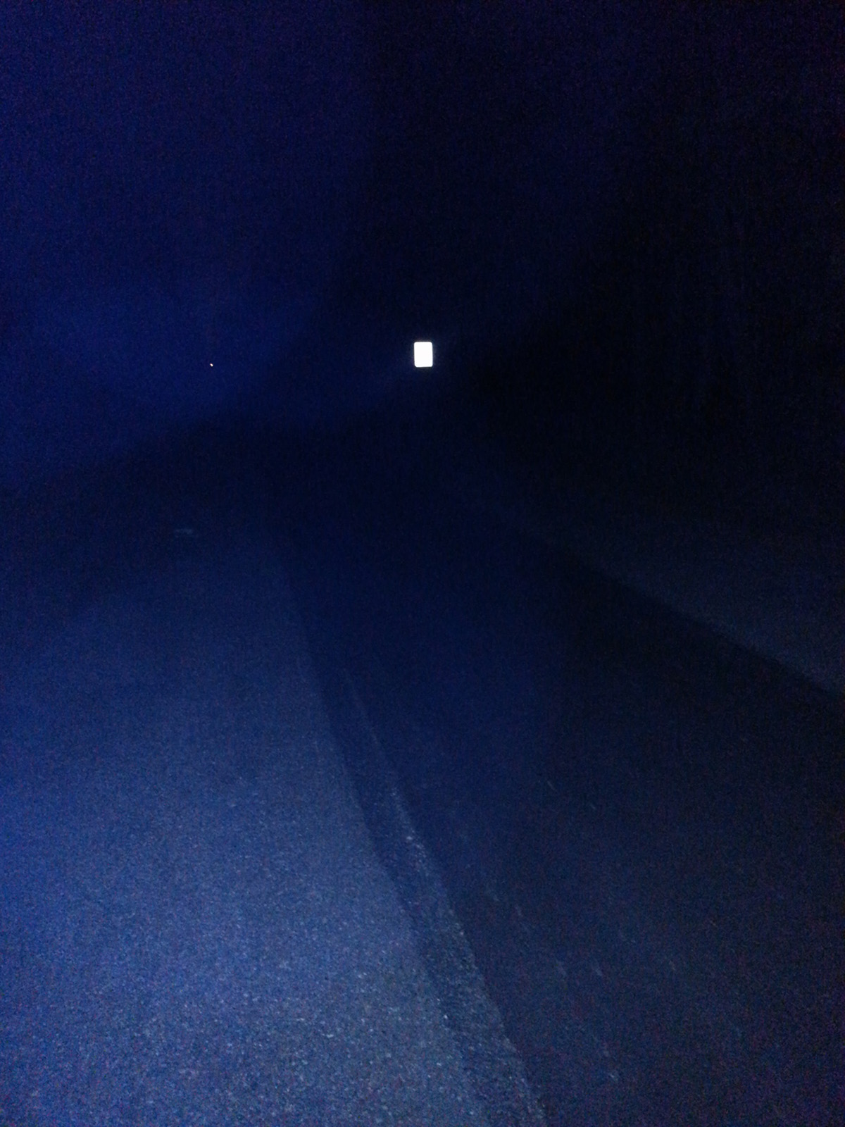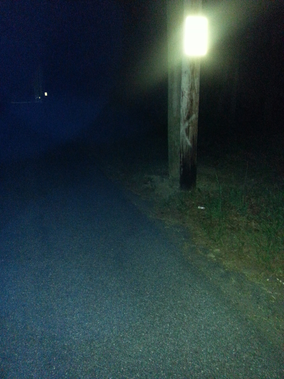 must honk the horn. We went ther at 12:30 am. We got out of our vehicle and walked around. Moments after being there about 6 large orbs came down the street to us. They circled my son Jeremy. I had him stand still while I recording them. Not even a minute passed and the orbs moved back towards the woods. The street is in total darkness as can be seen in the photos. |