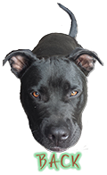 black dog named Bruiser. A black dog can be seen. There are